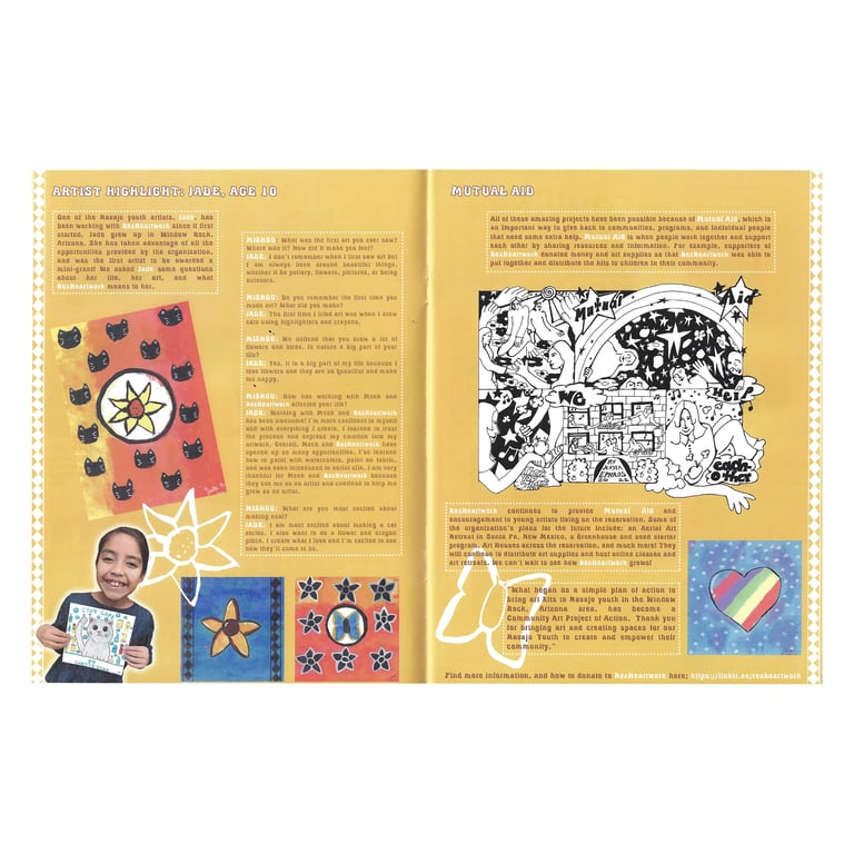 Mishou is an ALL AGES magazine, highlighting work by artists ages 15 and under, collaborations between generations, and interactive sections. Mishou aims to validate children's identities as individuals and artists, and encourage intergenerational engagement through the arts. 50% of each issue is donated to schools and non-profit organizations centered around early childhood arts education.