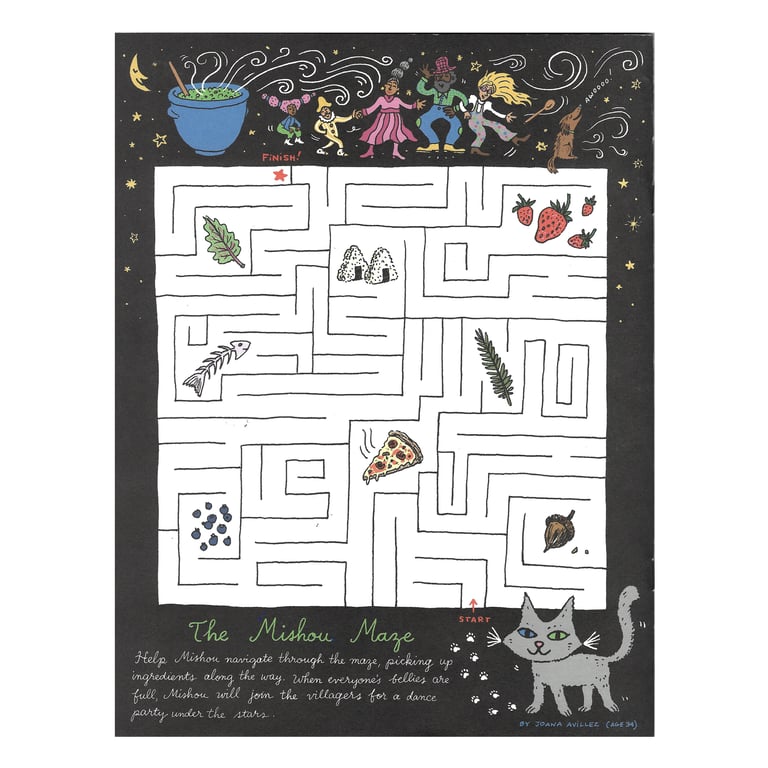 Our first issue is centered around the theme of “Stone Soup,” inspired by the eponymous folktale. In the story, some hungry travelers arrive at a village with nothing but an empty pot. At first, when they ask the villagers for food, they are turned away. The travelers take their pot to a stream, fill it with water, and put a large stone in it. They put the pot with the stone over a fire and wait for the water to boil. When the villagers ask what they are doing, the hungry strangers explain that they are making “stone soup”, and will happily share it with everyone. They also welcome the villagers to add some of their own ingredients to the soup to make it even tastier. Slowly but surely, people from the village begin to add bits of leftover food they don’t mind sharing. After each person has added something from their own kitchen, all of the food they have shared makes a delicious meal, big enough for everyone to eat. Although at the beginning the villagers did not want to share, by the end of the story they realize that when a community comes together they can make something amazing, that helps and nourishes everyone.