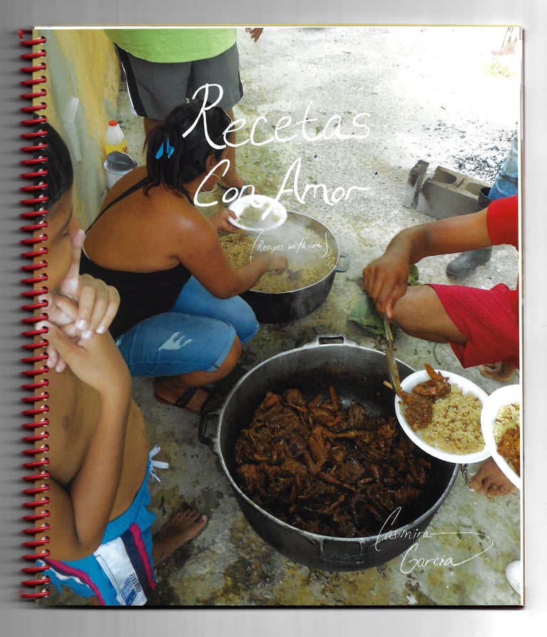 Recetas con Amor (Recipes with Love) is a collaboration between mother and son, Casimira Garcia and Cesar Ernesto Garcia. With all text in both Spanish and English, the bilingual cookbook / artbook hybrid collects 24 of Casimira’s traditional Dominican home recipes and archive photos from her childhood, along with Cesar’s photos from his travels to the Dominican Republic and illustrations inspired by his mother’s cooking. Recetas con Amor (Recipes with Love) is unique in that it uses an experimental format, the intersection of art book and cookbook, to emphasize intergenerational communication as a means to explore and preserve cultural and familial history.